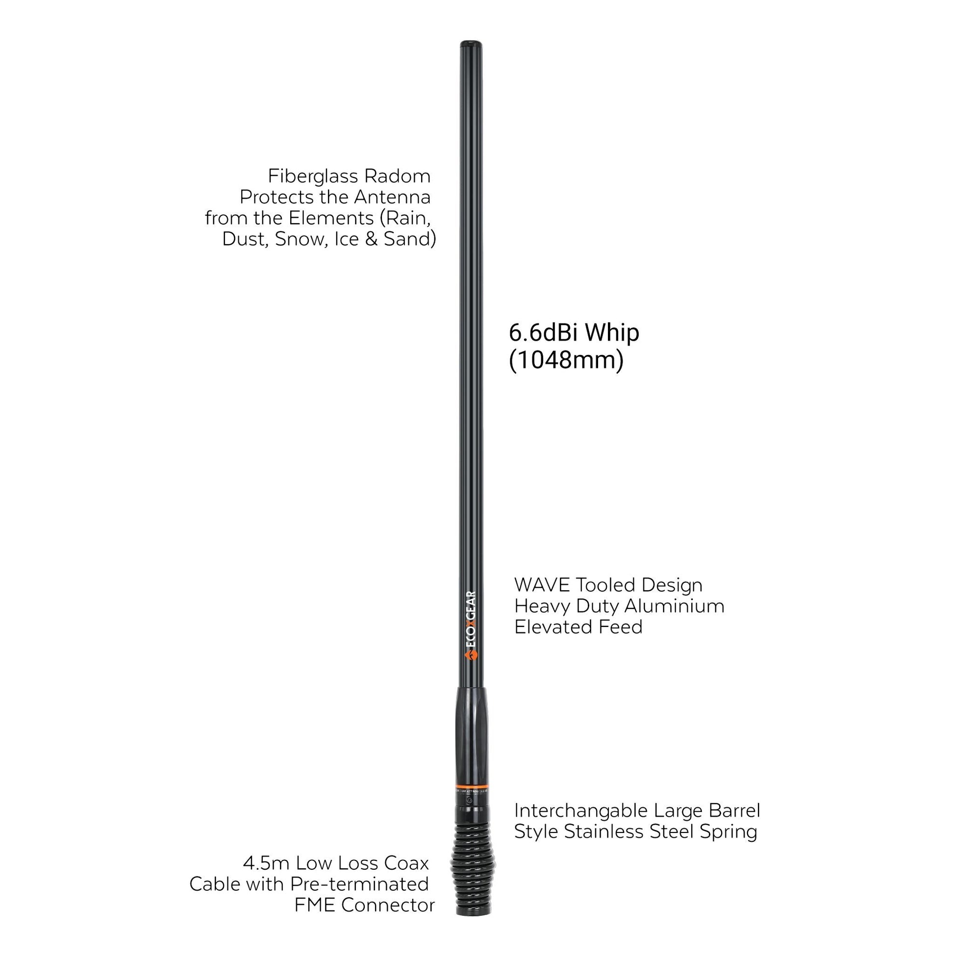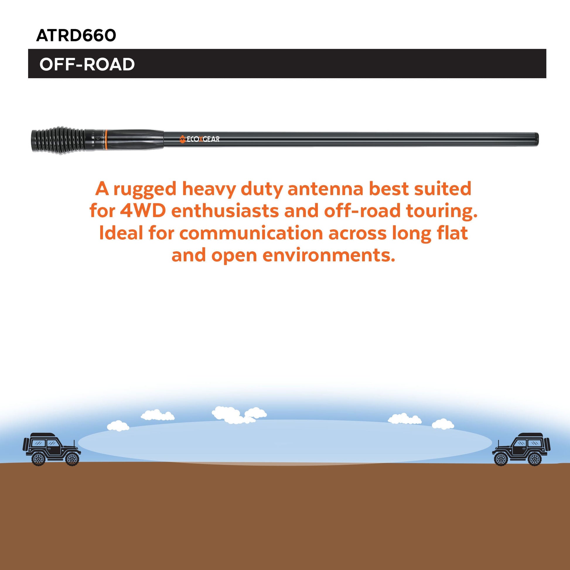OFF-ROAD: Heavy Duty Radome Antenna with Aluminium Ferrule & Interchangeable Large Barrel Style Stainless Steel Spring