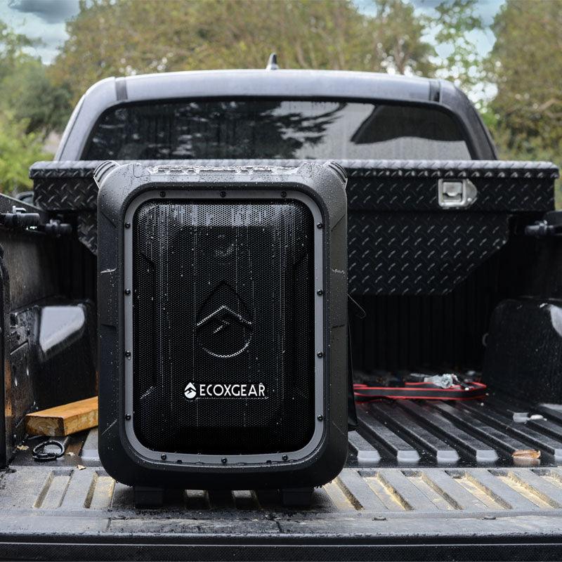 Is the EcoBoulder+ waterproof & can the EcoBoulder+ be used in water?YES. The EcoBoulder+ meets the IPX7 waterproof standard. The EcoBoulder+ can be used in the pool, the hot tub and the ocean without issues. Batten down the hatches and play your tunes worry free! Plus, the EcoBoulder+ floats! (Be careful, the charging caps and waterproof compartment must be closed properly to keep the EcoBoulder+ watertight.) What is IPX7?The IPX7 Waterproof Standard means that the product is protected against water immersion. ECOXGEAR tests all their products by submerging them in AT LEAST 3 feet of water. This means that our products, including the EcoBoulder+ can withstand use in the water. Be careful of other products that claim to be waterproof but are only IPX5 or less. They will leak and sink to the bottom of the pool under the fun conditions above. Does the EcoBoulder+ work with any Bluetooth enabled Device?The EcoBoulder+ waterproof speaker connects to any device that uses Bluetooth connectivity for audio. Laptops, Desktops, Tablets and Smartphones are all compatible! All Apple, Android, Blackberry and Windows devices are sure to be compatible. How far can the EcoBoulder+ be away from my Bluetooth device?The connectivity for the EcoBoulder+ is designed and tested to far exceed 30 feet (up to 100ft) from your Bluetooth device. Walls, leaded glass windows and metal studs inside the drywall will affect the range operation. The sound is distorted, how can it be improved?Try lowering the volume control of your connected device or musical instrument. Also, try to reduce the overall volume of the EcoBoulder+. The EcoBoulder+ will not pair With Bluetooth Device?Make sure that your device is compatible with Bluetooth. Turn off your EcoBoulder+ and Bluetooth device, then power on and reconnect. Make sure that Bluetooth mode is selected on your EcoBoulder+. I plugged in a microphone into the MIC port on the EcoBoulder+ and it is not working?The MIC port on the EcoBoulder+ is for use with dynamic microphones only (please check to ensure the microphone you are using is dynamic and not condenser type). The AM/FM reception is poor, how can I improve it?To adjust AM/FM reception, move entire product. To improve FM reception, do not use USB charging ports and unplug from AC power. Water is draining from bottom of unit, should I be concerned?Holes in the base of the EcoBoulder+ speaker are designed to allow excess water run-off to drain away from the speaker. Water draining from this area is normal and safe. Volume level is low when playing, how do I make it louder?First, increase the volume on your device to maximum. Next increase the volume on the EcoBoulder+ by pressing the Volume + button. If increasing the volume on the EcoBoulder+ and / or increasing the volume on your Bluetooth device does not work, the EcoBoulder+ may be in Power Save Mode. Which is the best party speaker?