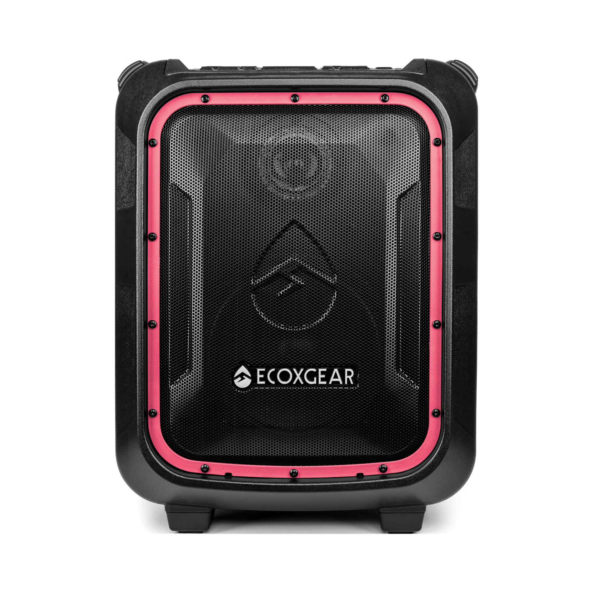 Is the EcoBoulder+ waterproof & can the EcoBoulder+ be used in water?YES. The EcoBoulder+ meets the IPX7 waterproof standard. The EcoBoulder+ can be used in the pool, the hot tub and the ocean without issues. Batten down the hatches and play your tunes worry free! Plus, the EcoBoulder+ floats! (Be careful, the charging caps and waterproof compartment must be closed properly to keep the EcoBoulder+ watertight.) What is IPX7?The IPX7 Waterproof Standard means that the product is protected against water immersion. ECOXGEAR tests all their products by submerging them in AT LEAST 3 feet of water. This means that our products, including the EcoBoulder+ can withstand use in the water. Be careful of other products that claim to be waterproof but are only IPX5 or less. They will leak and sink to the bottom of the pool under the fun conditions above. Does the EcoBoulder+ work with any Bluetooth enabled Device?The EcoBoulder+ waterproof speaker connects to any device that uses Bluetooth connectivity for audio. Laptops, Desktops, Tablets and Smartphones are all compatible! All Apple, Android, Blackberry and Windows devices are sure to be compatible. How far can the EcoBoulder+ be away from my Bluetooth device?The connectivity for the EcoBoulder+ is designed and tested to far exceed 30 feet (up to 100ft) from your Bluetooth device. Walls, leaded glass windows and metal studs inside the drywall will affect the range operation. The sound is distorted, how can it be improved?Try lowering the volume control of your connected device or musical instrument. Also, try to reduce the overall volume of the EcoBoulder+. The EcoBoulder+ will not pair With Bluetooth Device?Make sure that your device is compatible with Bluetooth. Turn off your EcoBoulder+ and Bluetooth device, then power on and reconnect. Make sure that Bluetooth mode is selected on your EcoBoulder+. I plugged in a microphone into the MIC port on the EcoBoulder+ and it is not working?The MIC port on the EcoBoulder+ is for use with dynamic microphones only (please check to ensure the microphone you are using is dynamic and not condenser type). The AM/FM reception is poor, how can I improve it?To adjust AM/FM reception, move entire product. To improve FM reception, do not use USB charging ports and unplug from AC power. Water is draining from bottom of unit, should I be concerned?Holes in the base of the EcoBoulder+ speaker are designed to allow excess water run-off to drain away from the speaker. Water draining from this area is normal and safe. Volume level is low when playing, how do I make it louder?First, increase the volume on your device to maximum. Next increase the volume on the EcoBoulder+ by pressing the Volume + button. If increasing the volume on the EcoBoulder+ and / or increasing the volume on your Bluetooth device does not work, the EcoBoulder+ may be in Power Save Mode. Which is the best party speaker?