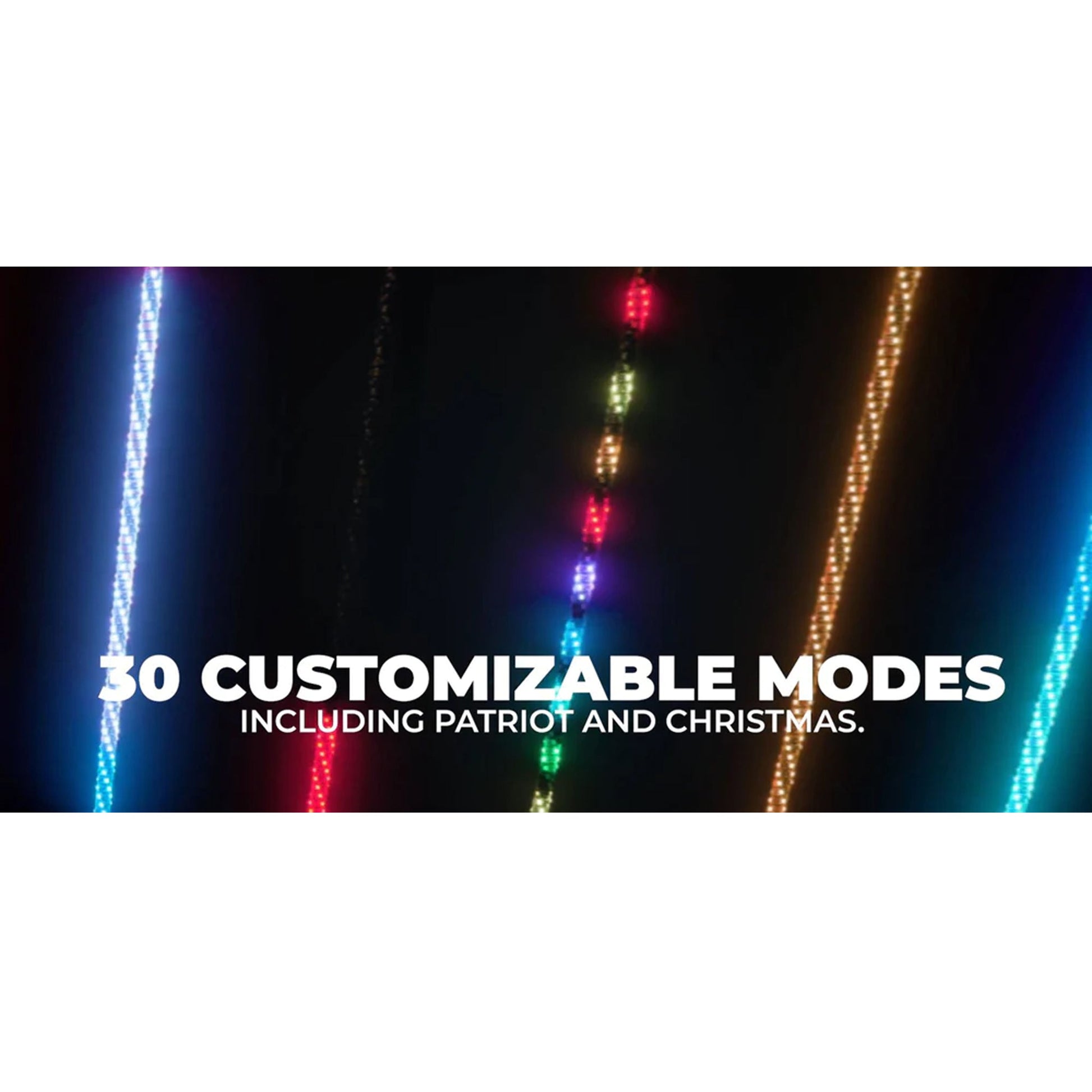 4 Zone LEDCast Controller Included. SoundExtreme whip kit with 1 x 2ft (61cm) RGBIC Multi-Color LED Whip with Quick Release Magnetic Whip Mount by ECOXGEAR is a 12V LED powersports vehicle accent light to create breathtaking lighting effects on your vehicle. All the lights can also be controlled by the smartphone SoundExtreme App and RF remote control.