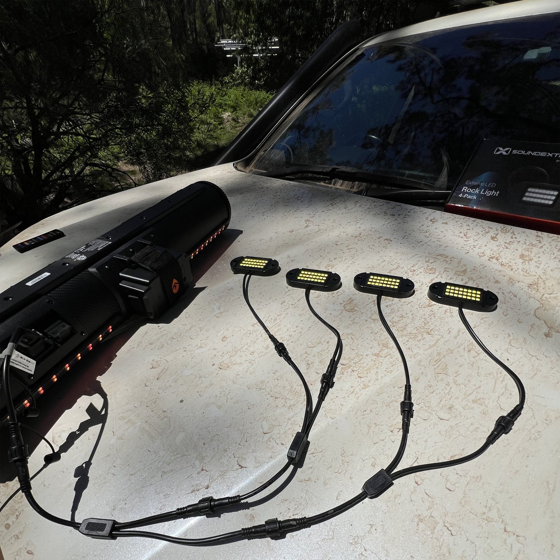 The New SE28 SoundExtreme Elite powersports sound bar now includes integrated LEDCast lighting control and upgraded speakers for richer and more powerful sound. The LED lighting system is perfect for your 4WD/ATV/UTV, boat, and golf cart. 100% waterproof, dustproof, and dirtproof. 500 watts of power to 8 marine grade speakers provides a great listening experience. With our EcoCast feature connect up to 50 Sound Extremes at a time! Our LEDCast lighting control is a 4 zone controller. It allows you to connect up to 2 additional LED light kits. All the lights can also be controlled by free smartphone SoundExtreme App.