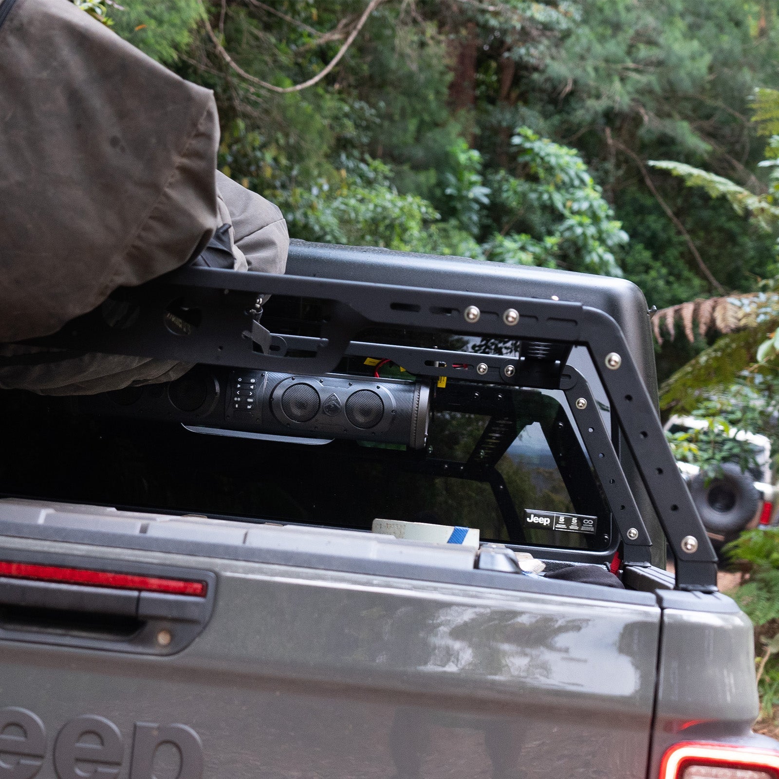 SoundExtreme includes various mounting brackets and accessories. Utilizing the mounts allows users to mount to vehicle in various ways: • Use mounting brackets and provided screws to mount to vehicle cross bar by drilling holes in cross bar (or other mounting surface…ie vehicle roof, etc.) and using provided screws to bolt mounting brackets onto cross bar • Drill hole through cross bar and use provided screws to secure SoundExtreme to cross bar by screwing directly into top mount rail threaded holes on SoundExtreme • Use mounting brackets and provided worm clamps to secure the SoundExtreme onto a cross bar (without needing to drill holes in cross bar) • Purchase other after-market accessory mounts that are compatible with the SoundExtreme brackets to mount as you see fit. You can find many compatible mount tube/pipe mount options online and Amazon by searching ‘ Universal cage tube clamp mount’. Please make sure to follow AUSTRALIAN DESIGN RULES