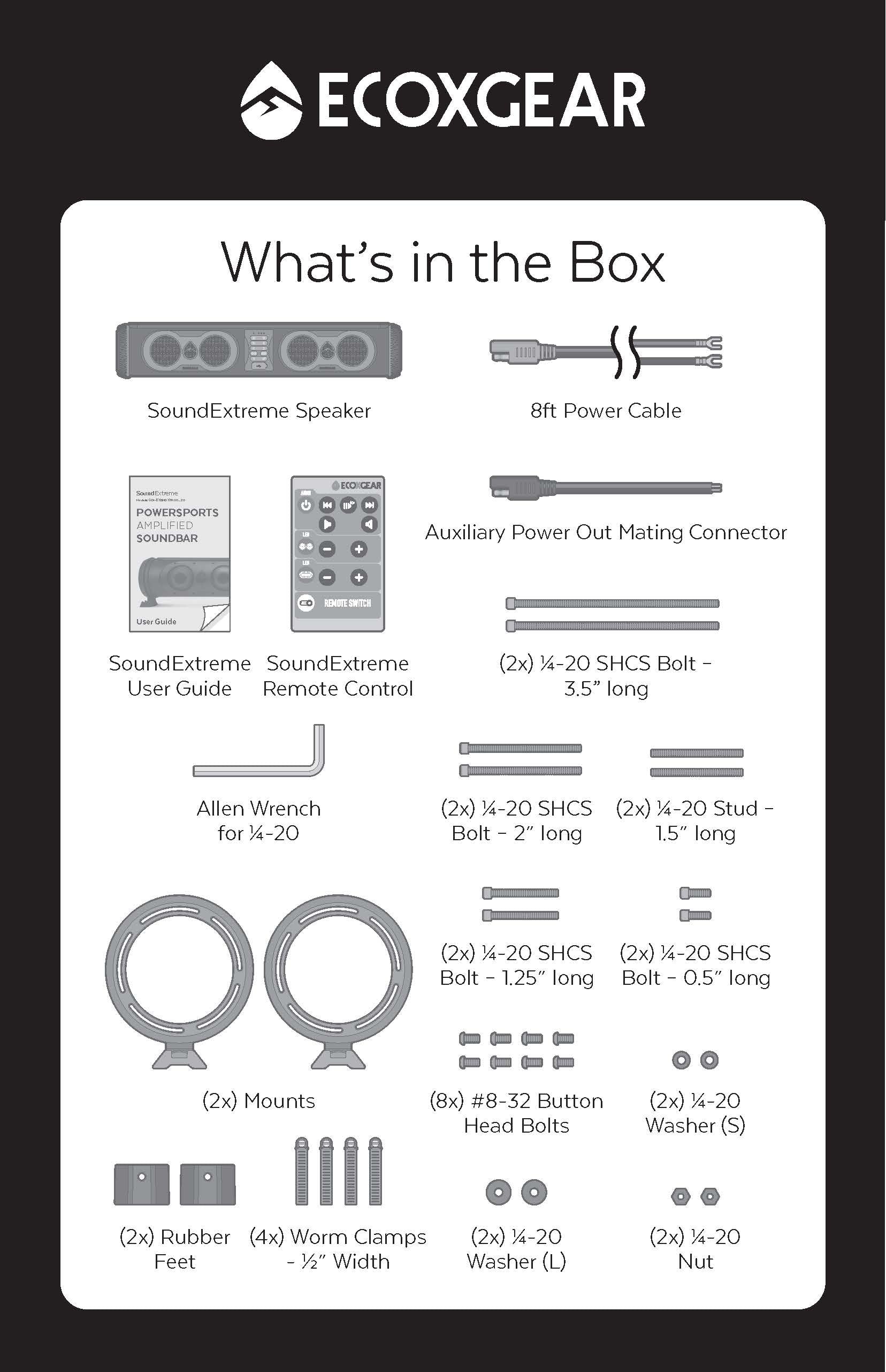 •EcoCast allows up to 50 soundbars to be connected together or connect to any ECOXGEAR speaker with the EcoCast feature.