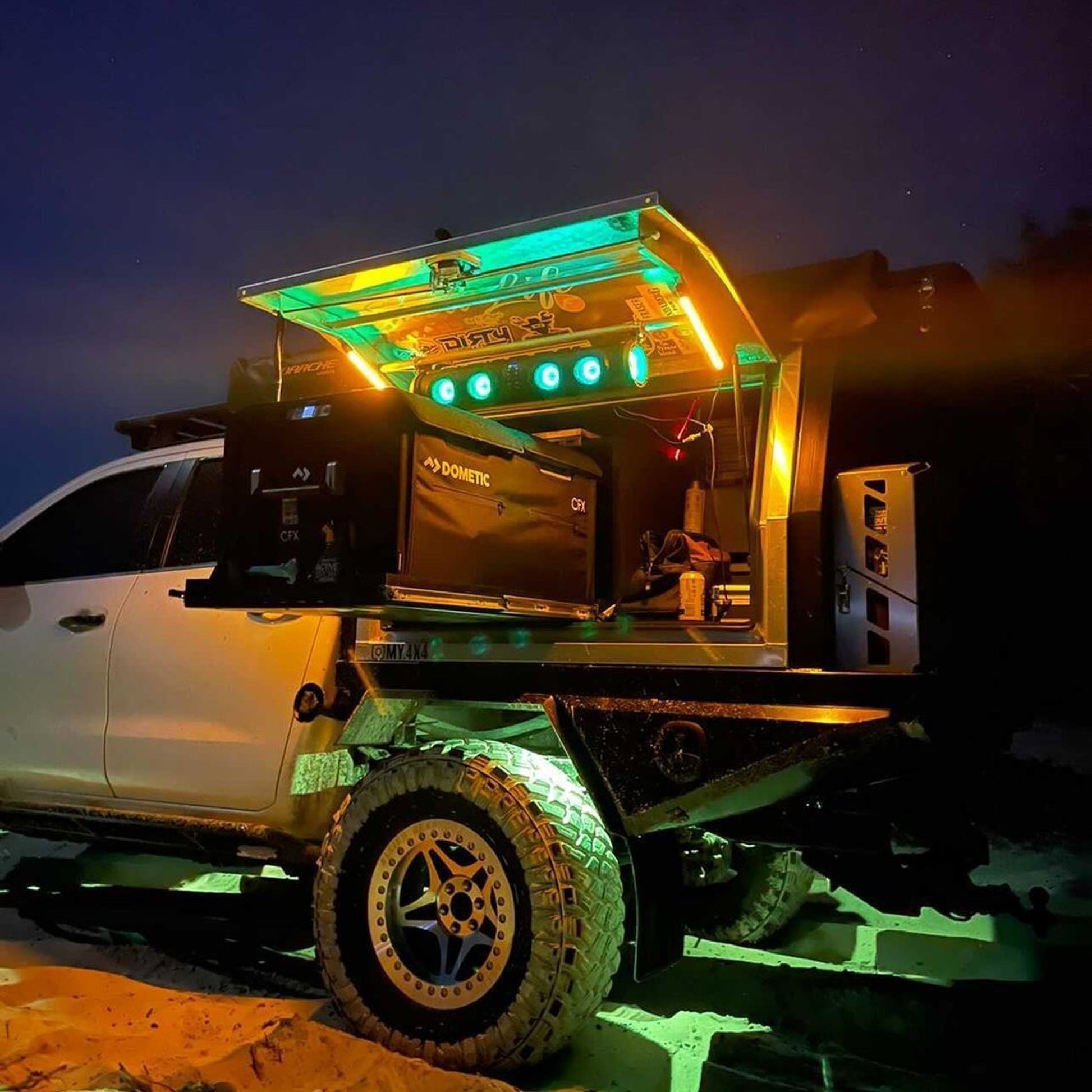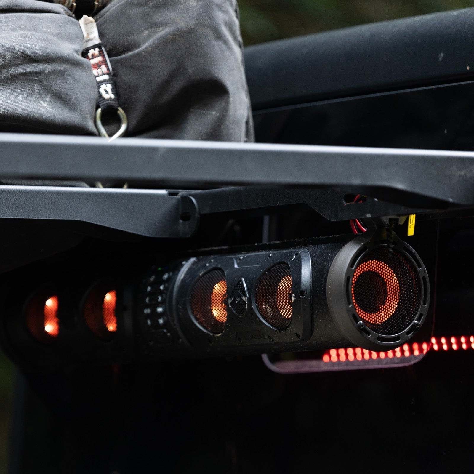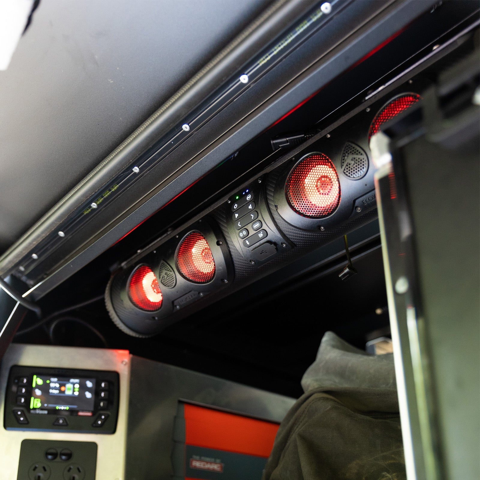 The SoundExtreme SE26 Powersports Bluetooth soundbar speaker and LED lighting system are perfect for your 4WD, ATV/UTV, Boat, and Golf Cart. This Bluetooth soundbar speaker is 100% waterproof, dustproof, and dirtproof. It offers 500 watts of power to eight marine grade speakers that provide a great listening experience. With our EcoCast feature, you can connect up to 50 SoundExtremes at a time! If you’re looking for a rugged Bluetooth soundbar speaker to pump out some music during your adventures in the outback, The SoundExtreme Powersports soundbar is what you’re looking for!