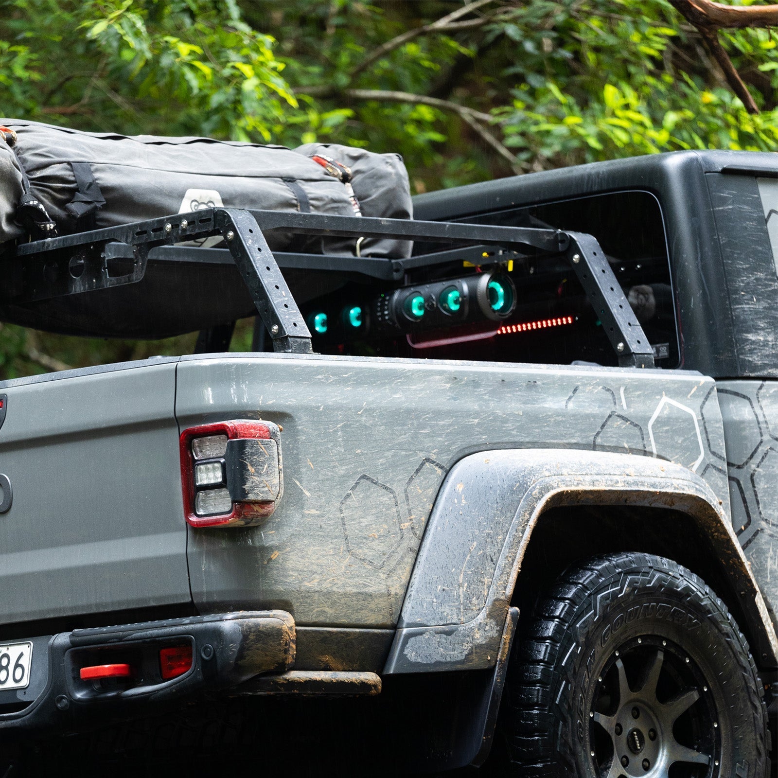 SoundExtreme includes various mounting brackets and accessories. Utilizing the mounts allows users to mount to vehicle in various ways: • Use mounting brackets and provided screws to mount to vehicle cross bar by drilling holes in cross bar (or other mounting surface…ie vehicle roof, etc.) and using provided screws to bolt mounting brackets onto cross bar • Drill hole through cross bar and use provided screws to secure SoundExtreme to cross bar by screwing directly into top mount rail threaded holes on SoundExtreme • Use mounting brackets and provided worm clamps to secure the SoundExtreme onto a cross bar (without needing to drill holes in cross bar) • Purchase other after-market accessory mounts that are compatible with the SoundExtreme brackets to mount as you see fit. You can find many compatible mount tube/pipe mount options online and Amazon by searching ‘ Universal cage tube clamp mount’. Please make sure to follow AUSTRALIAN DESIGN RULES